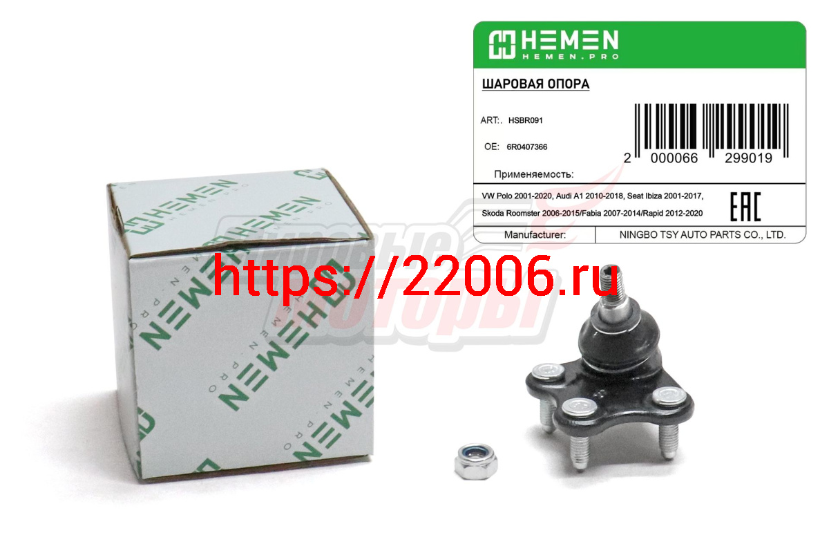 - Опора шаровая правая VW Polo 01-, Audi A1 10-, Seat Ibiza 01-, Skoda Roomster 06-, Fabia 07-, Rapid 12- (HSBR091) в Талице недорого