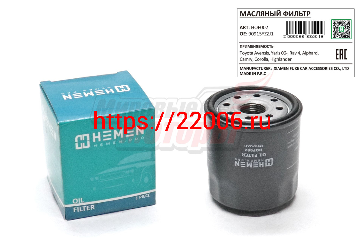 - Фильтр масляный Toyota Avensis, Yaris 06-, Rav 4, Alphard, Camry, Corolla, Highlander (HOF002) в Талице недорого